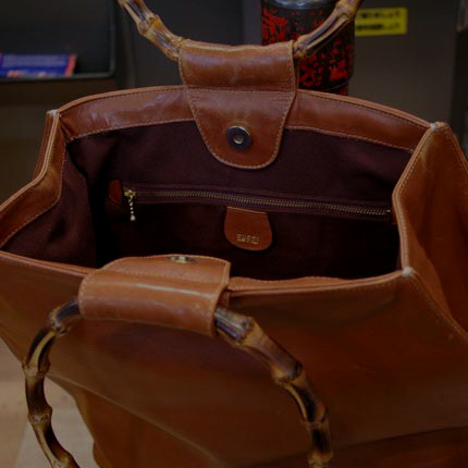 内装部分に付属のブランドロゴのタグや、ロゴ入りの金具など