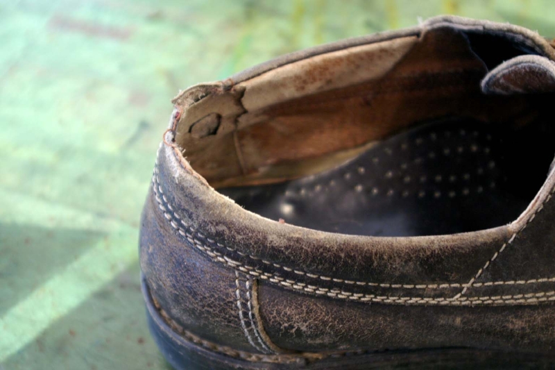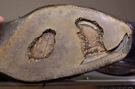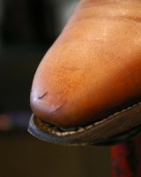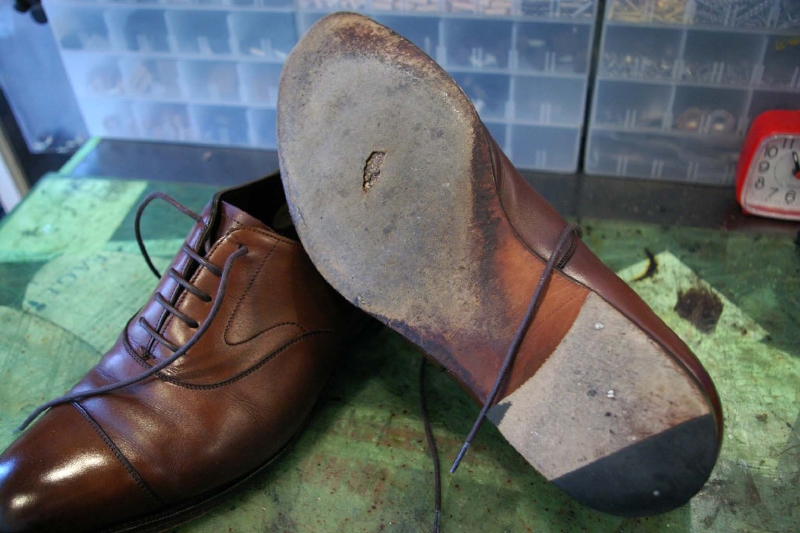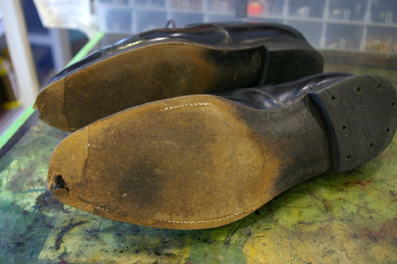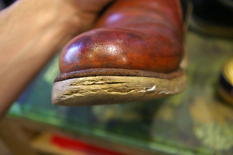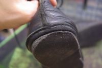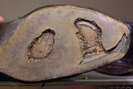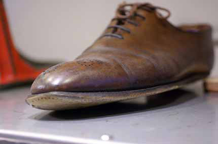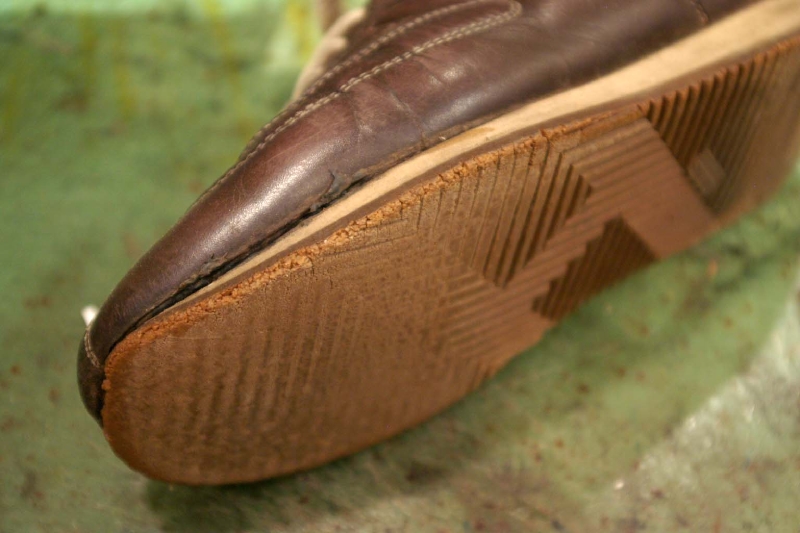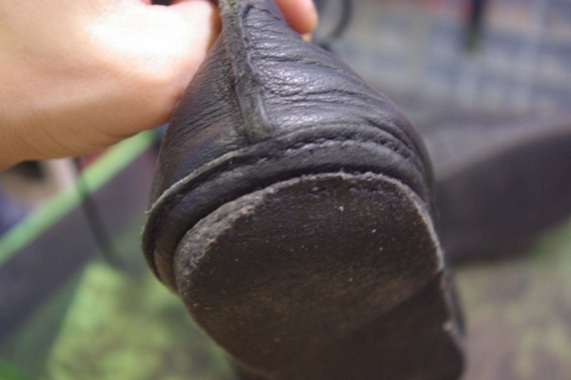 レザーソールはつま先が真っ先に擦り減ってしまいます。こちらのように擦り減り、