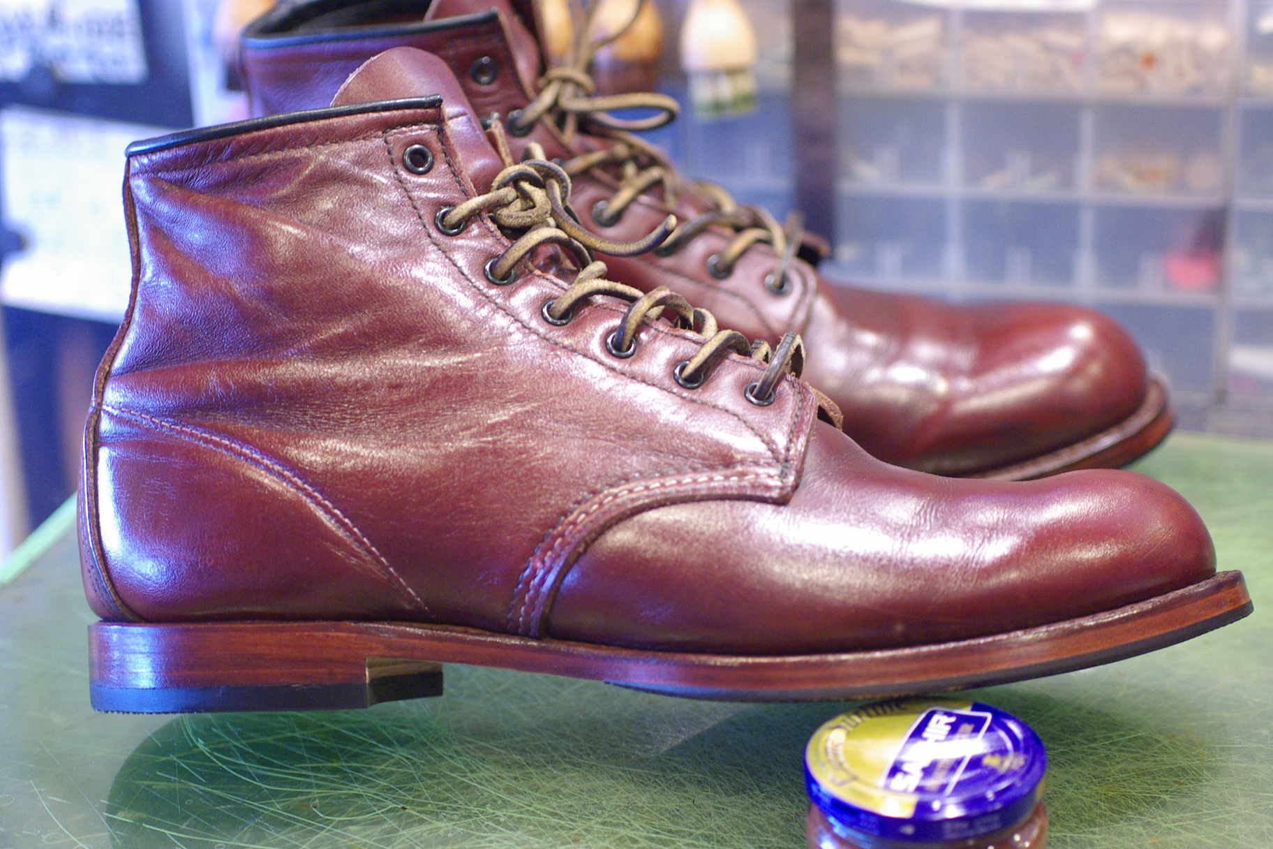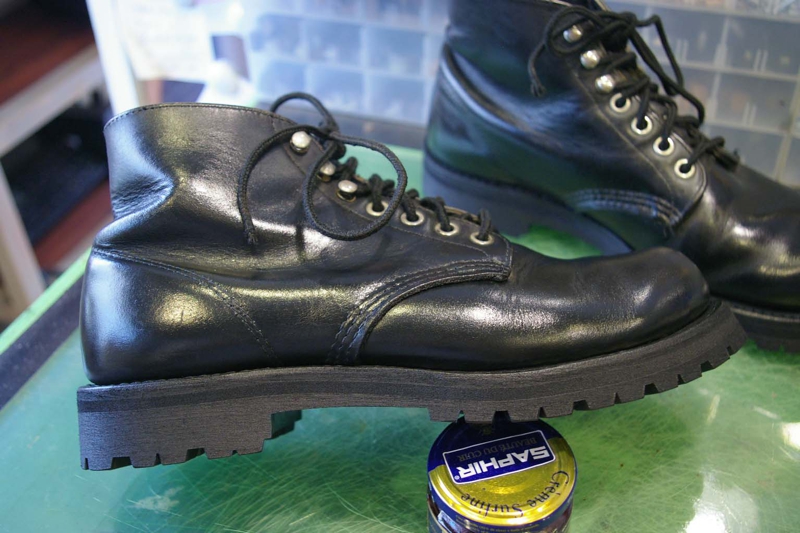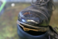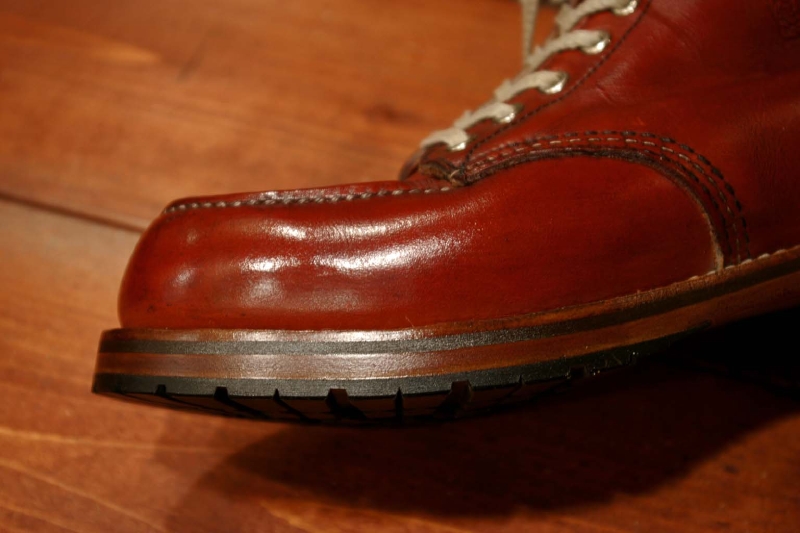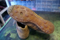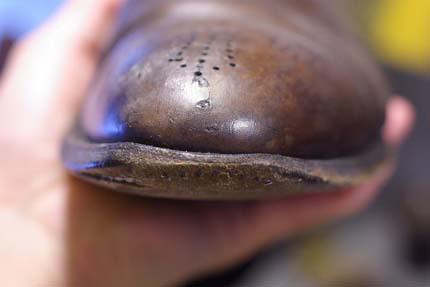つま先には、レザーソール特有の減りを防ぐ為、ビンテージスチールを取付けました。
