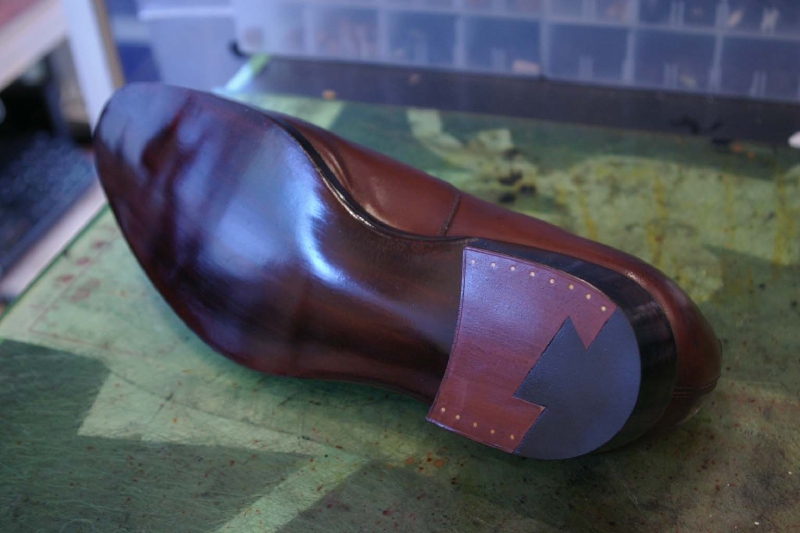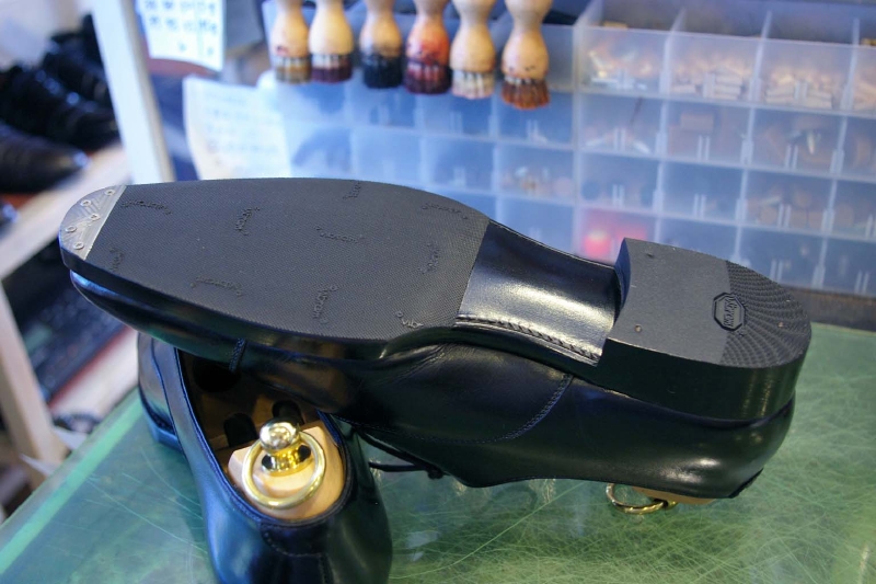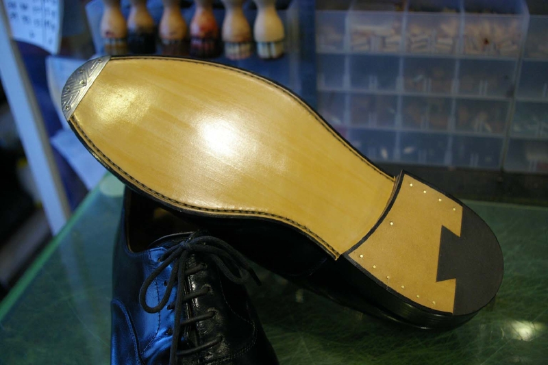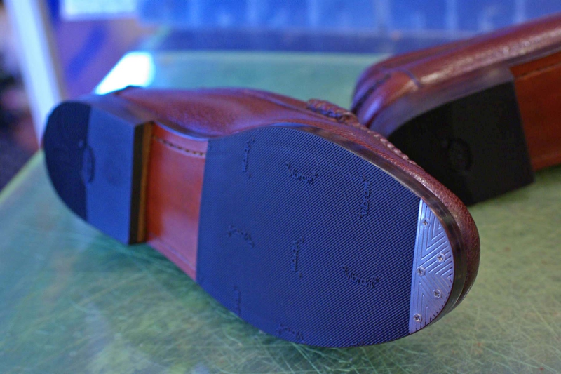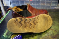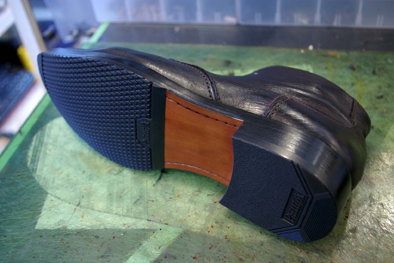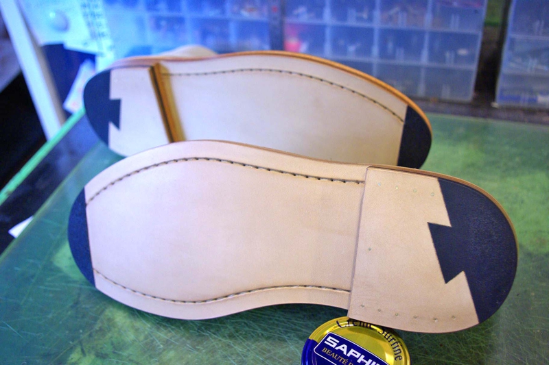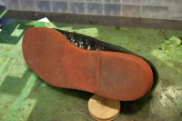 オールソールの段階で同時に取付けを行いますと、底縫いの糸を切らずに取付けられます。
