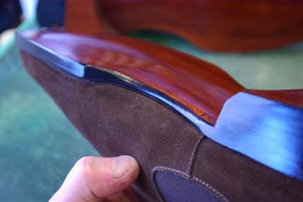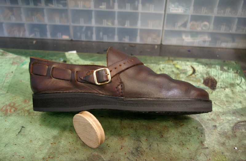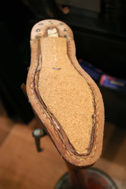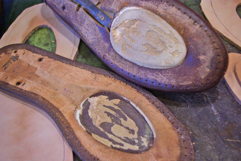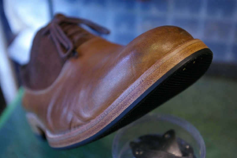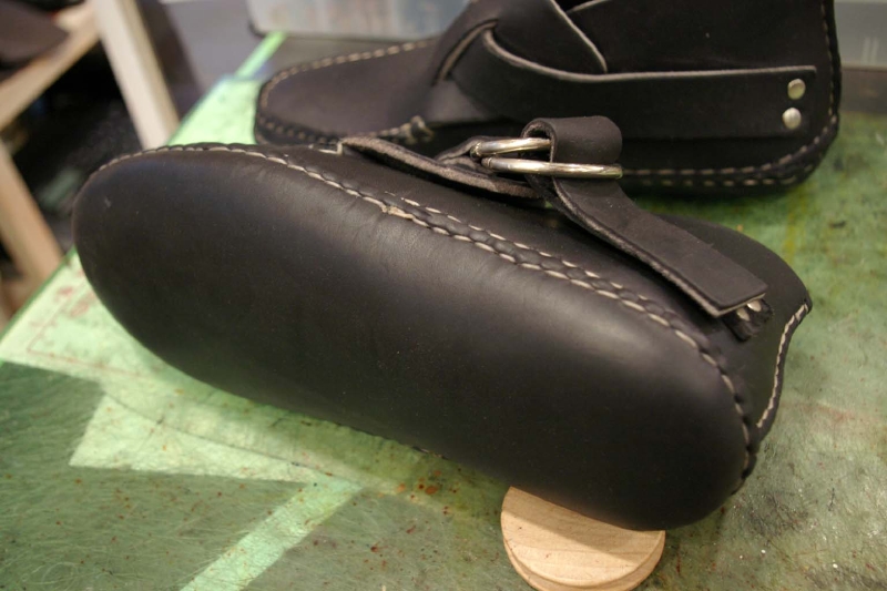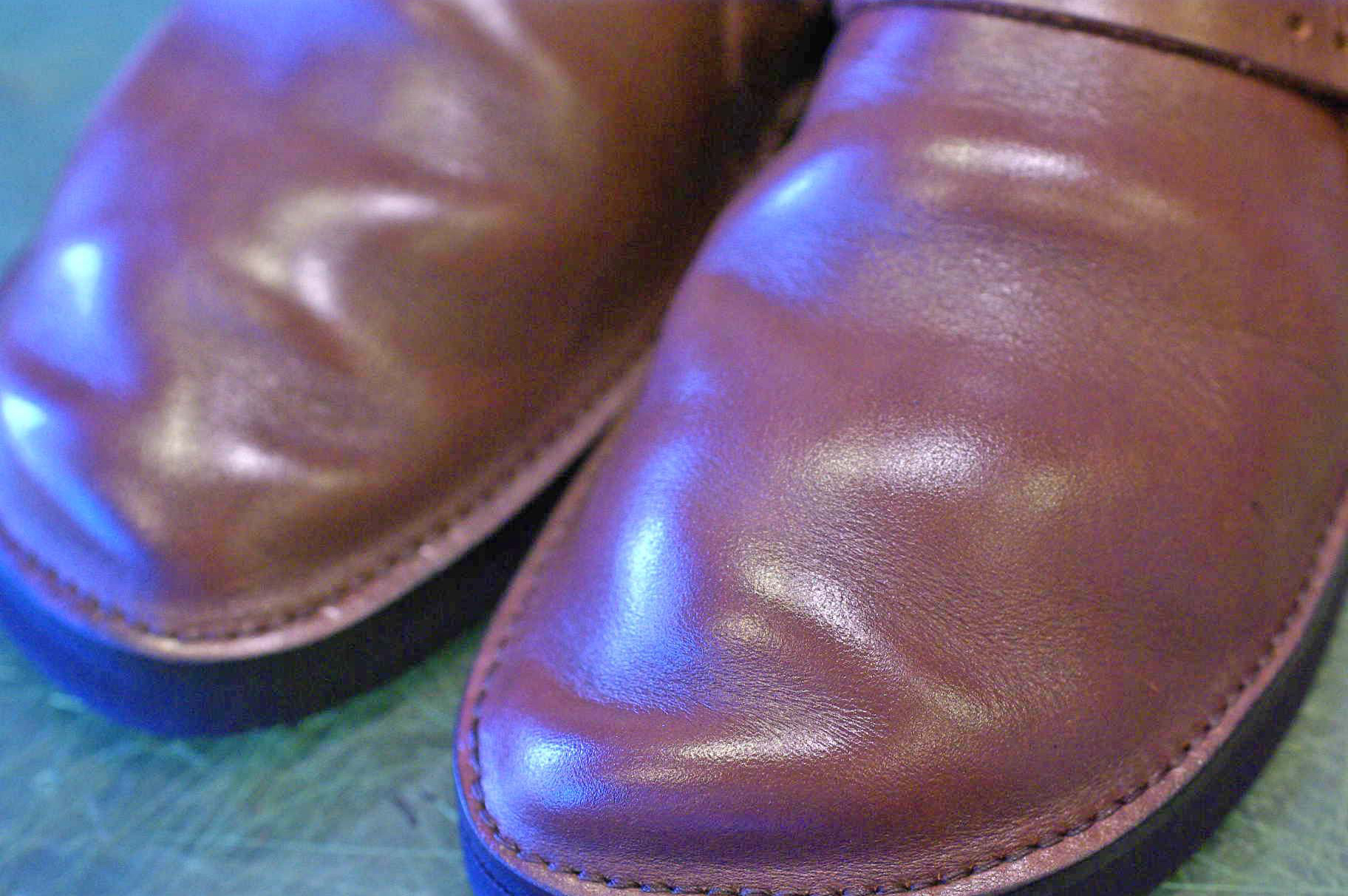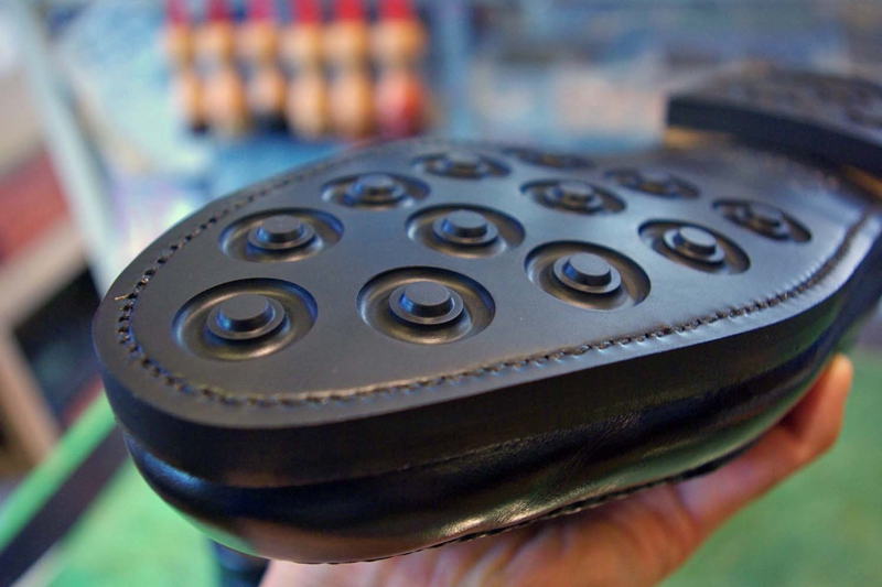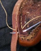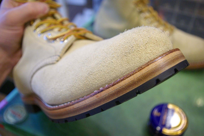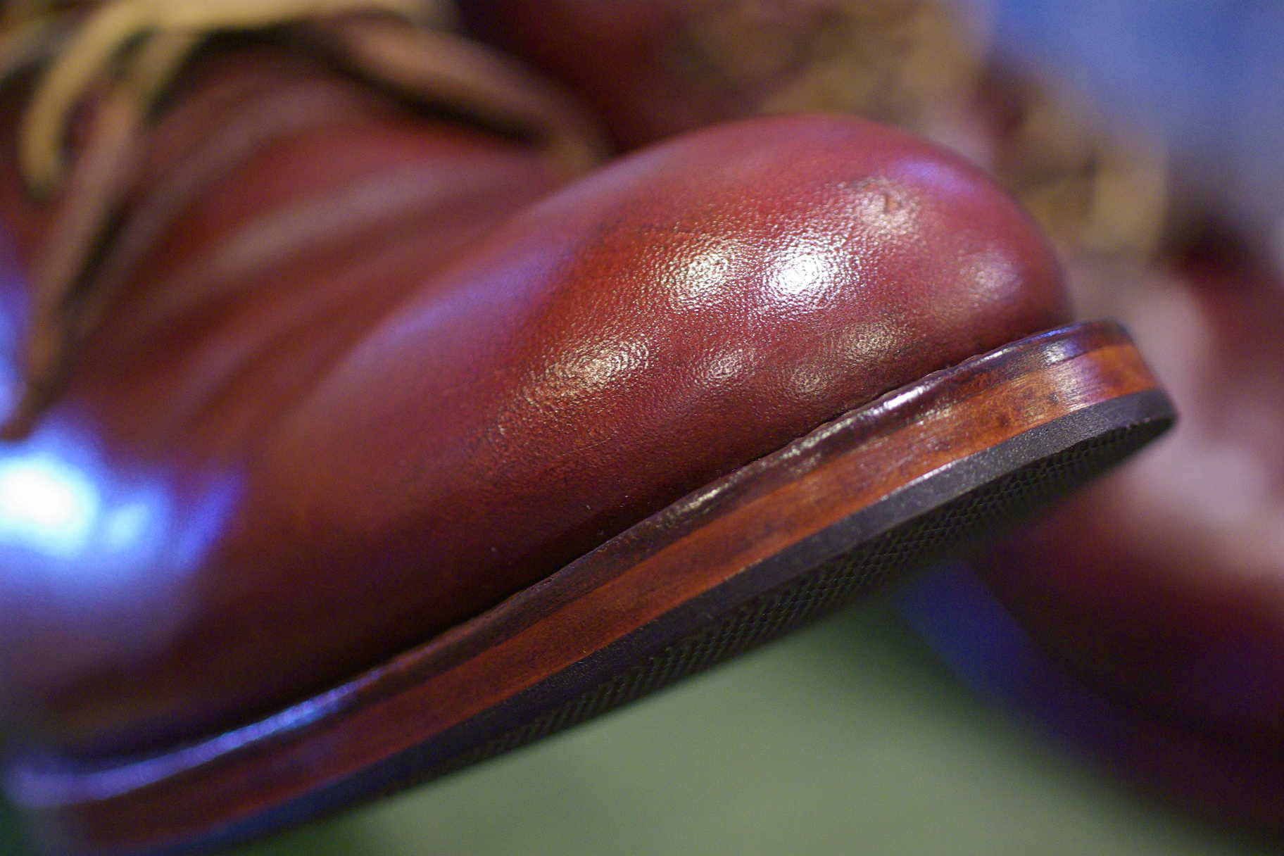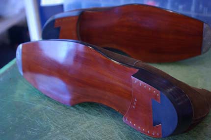 レザーソール仕様の場合は、特につま先の摩耗が早いので、あらかじめ底縫いを掛けた後に