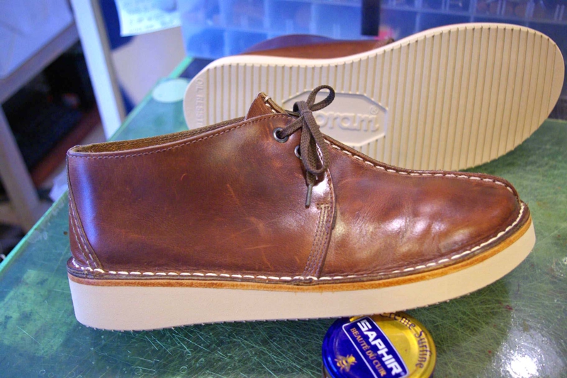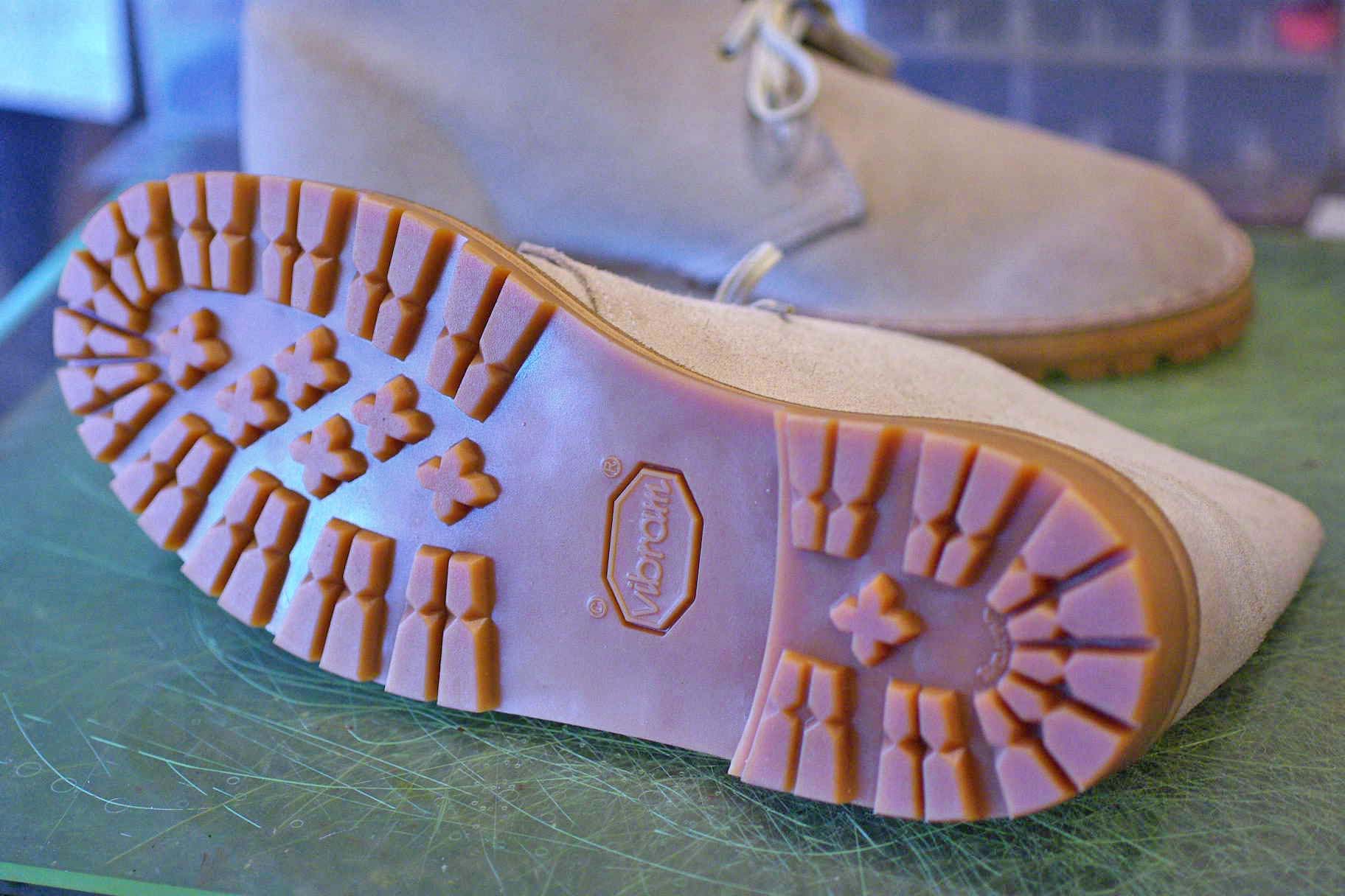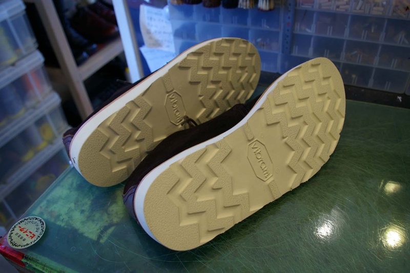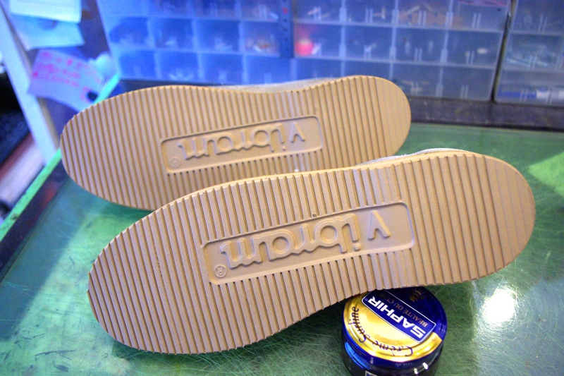 もともとがブラウンとアプリコットカラーのVIBRAMソールでしたが、
