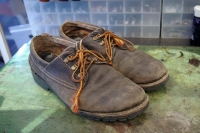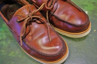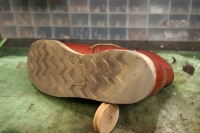 ソールが劣化しぼろぼろと…。ソールと本体のきわの部分も裂け始めています。