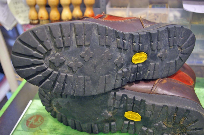 レザーソールにビンテージスチール/VIBRAMハーフラバーソール/VIBRAMオーロラリフト