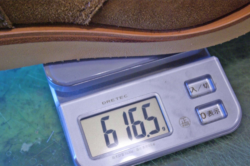 表面にはラバーソールを用いますので、純正ソールよりは重さが若干増加します。