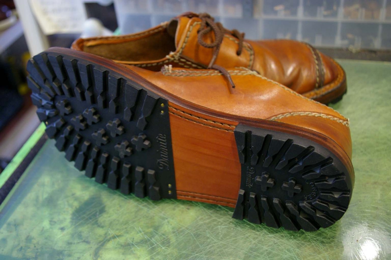 交換の際は、レザーソールにダイナイトロジャーハーフソールとリフトを施しました。