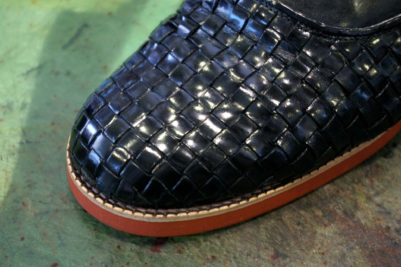 オリジナル同様、前側はウェルテッド製法でだし縫いを行い、踏まず部分はマッケイ製法となります。