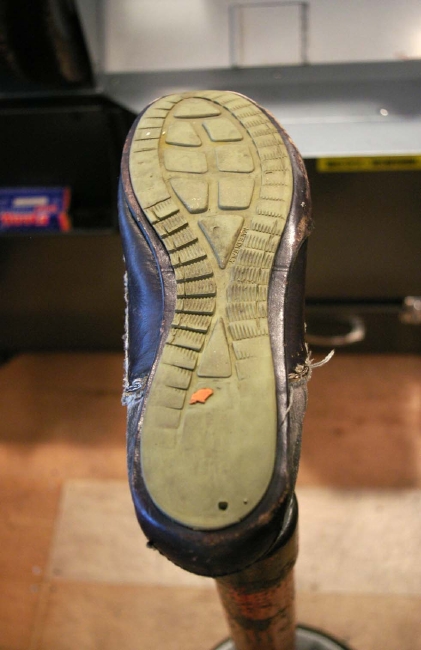 摩耗してもすぐに本体が擦れないように設定してソール交換を行っております。