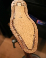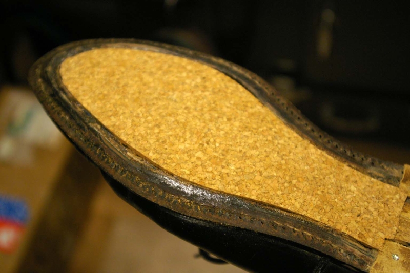 靴底を剥がしてみますと、通常はコルクが敷き詰められている中もの部分に、