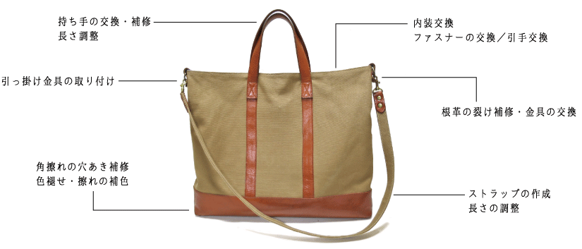 かばん修理・価格一覧