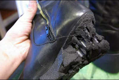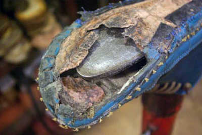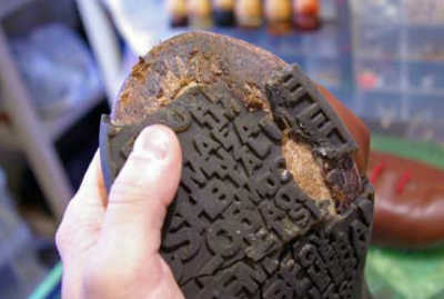 また、割れたソールはソール交換の際に、ヒールの高さのバランス等を確認するのに