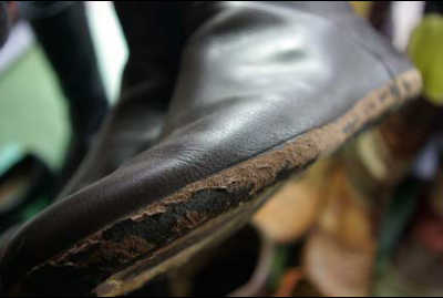 また、ソールに底縫いが掛かっている靴の場合ですと、その糸が切れている状態で
