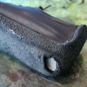 一段目のラバーリフトが無くなりますと、土台部分の革は、さくさくと減ってしまいますので