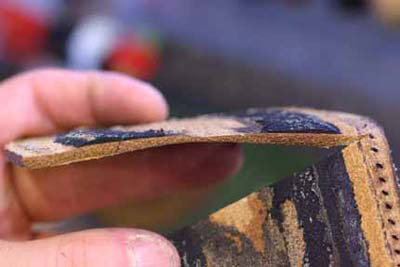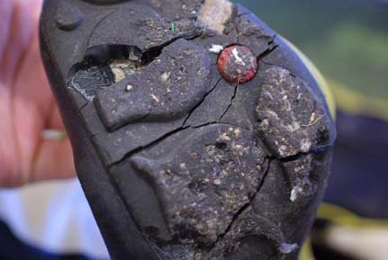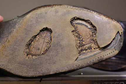 一つは、使用によって靴底が摩耗し、穴が開き始めている場合。